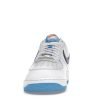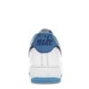 The AF 1 Low First Use White University Blue upper is crafted from tumbled white leather, with university blue appearing on the heel tab, tongue, outsole, and Swoosh