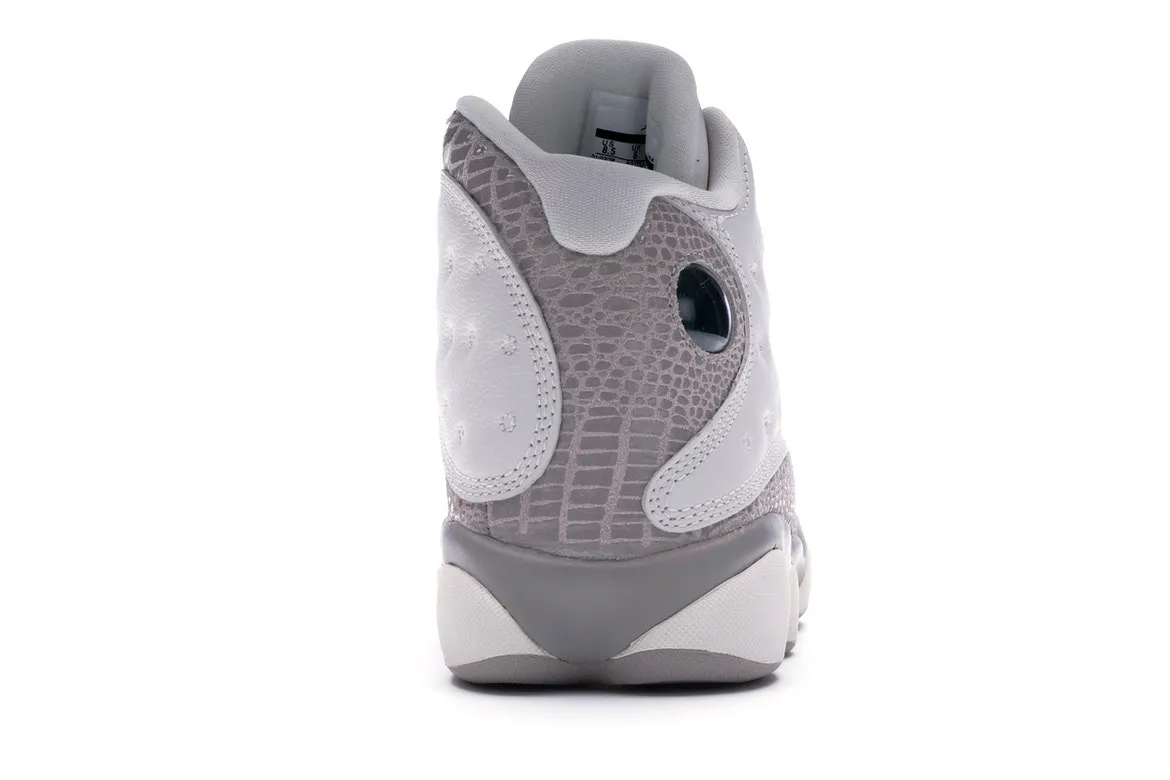 The AJ 13 is back, this time in an exclusive Phantom colorway. Featuring luxury materials, this pair uses a premium white leather upper, with grey croc skin-texted overlays.
