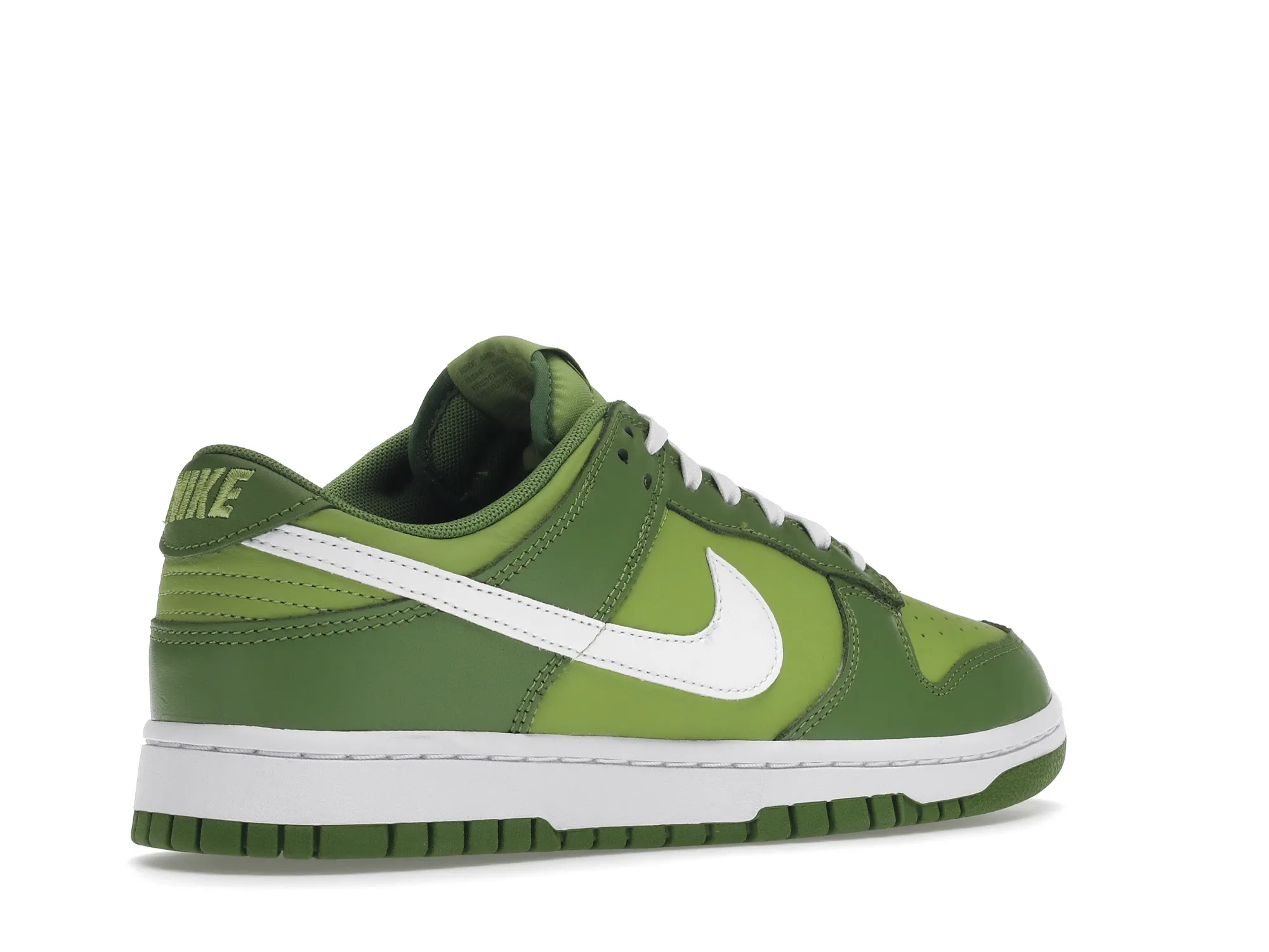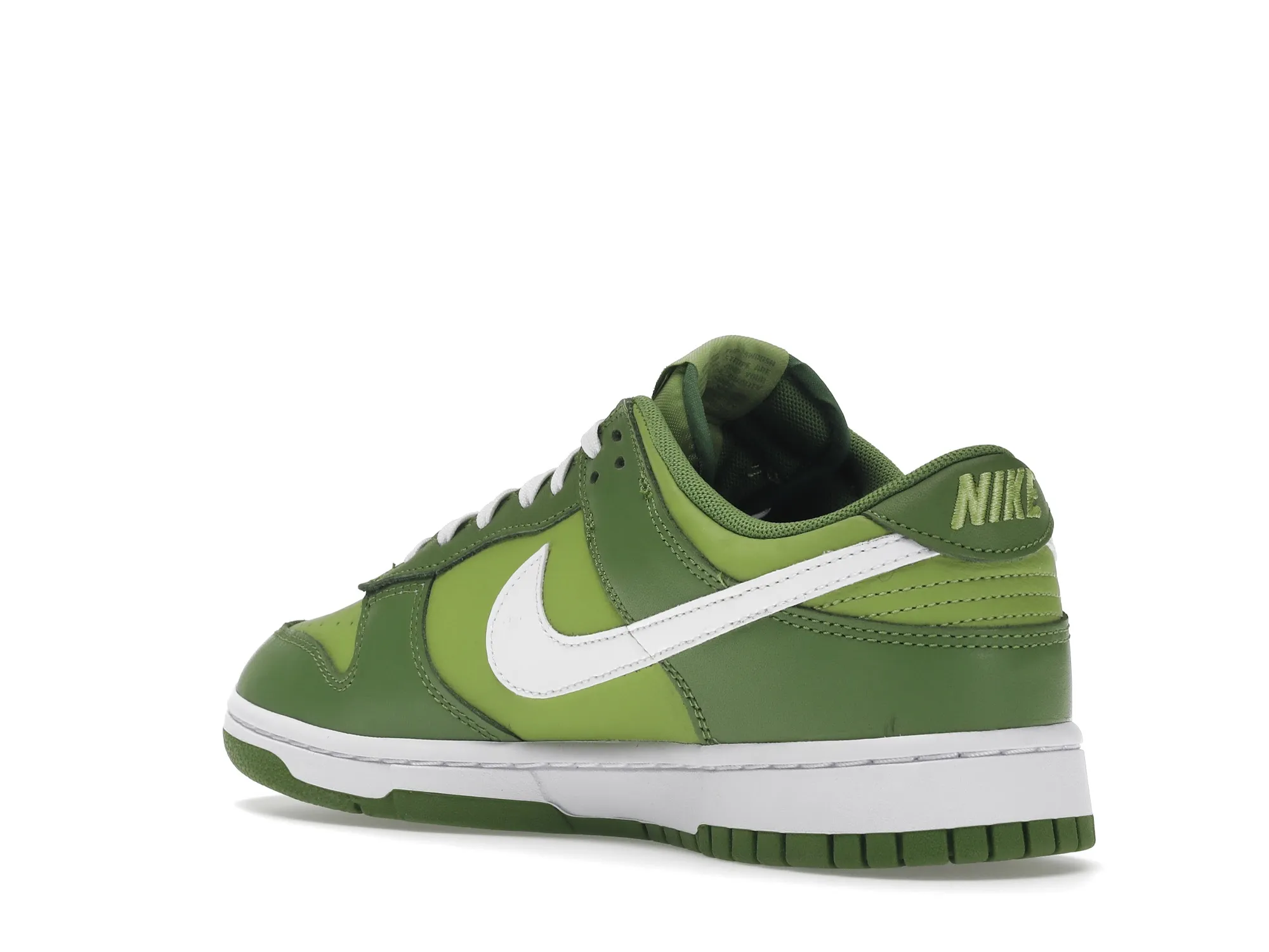 The dnk Low Chlorophyll features a light green smooth leather upper with darker green overlays and white Swooshes. Woven tongue labels and embroideries on the heel tabs add a retro look. At the base, a white and green foam sole completes the design.
