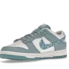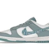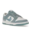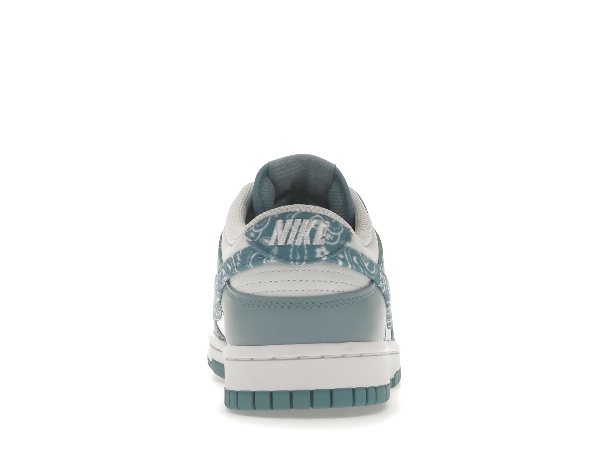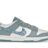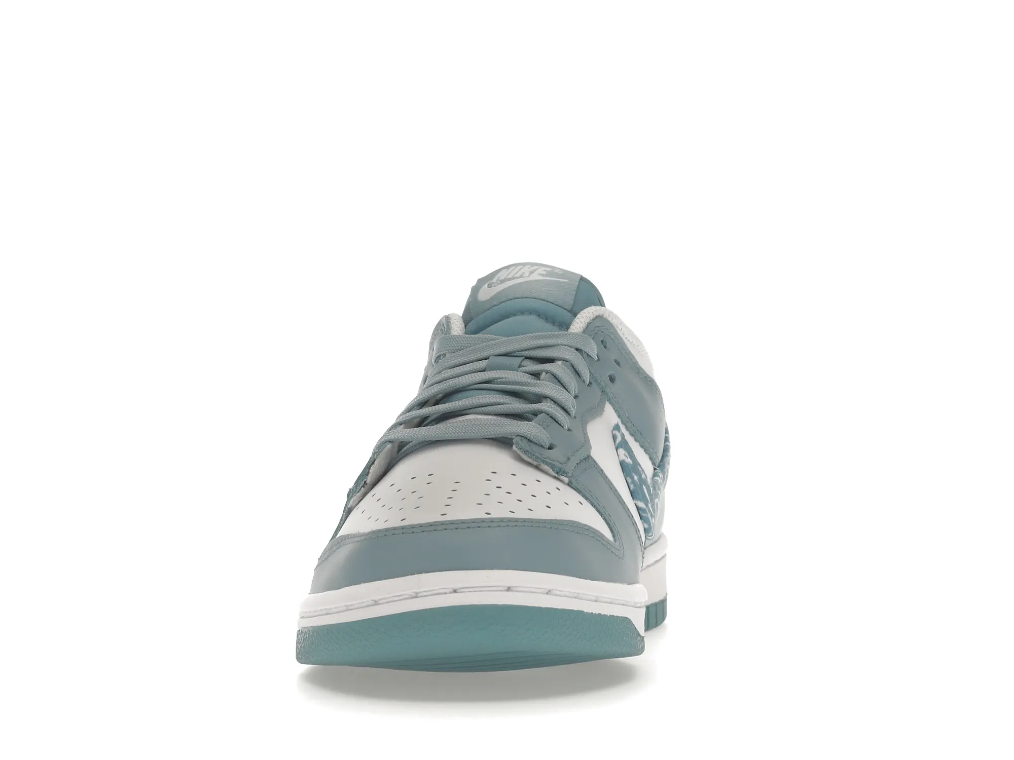 This offering of the dnk Low features a White leather base with light blue overlays, nylon tongues, laces, insoles and rubber outsole. Highlighting the shoe is the paisley bandana print on the Swooshes and heel tabs while White continues on the branded tongues, heels, insoles and midsole.