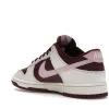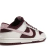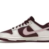 The Valentine?s Day dnk Low has a burgundy and sail leather upper with a tumbled pink leather Swoosh. The limited edition sneakers have burgundy outsoles, a mesh sockliner, and is tied off with burgundy shoe laces.