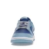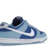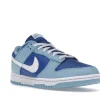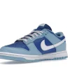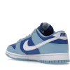 The dnk Low Retro QS Flash White Argon Blue Flash features a smooth leather upper that combines a marine blue foundation with powder blue overlays and a crisp white Swoosh.