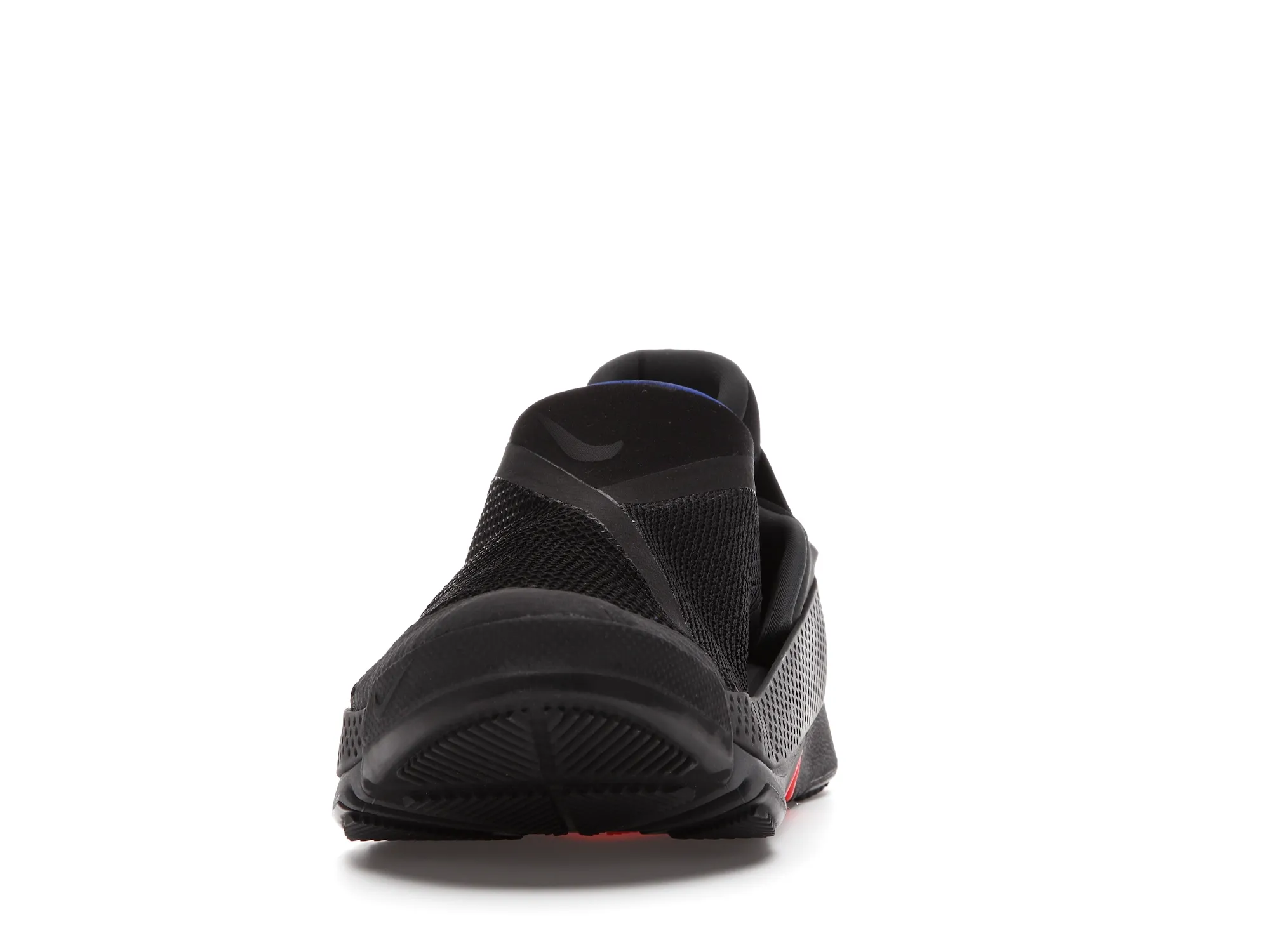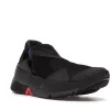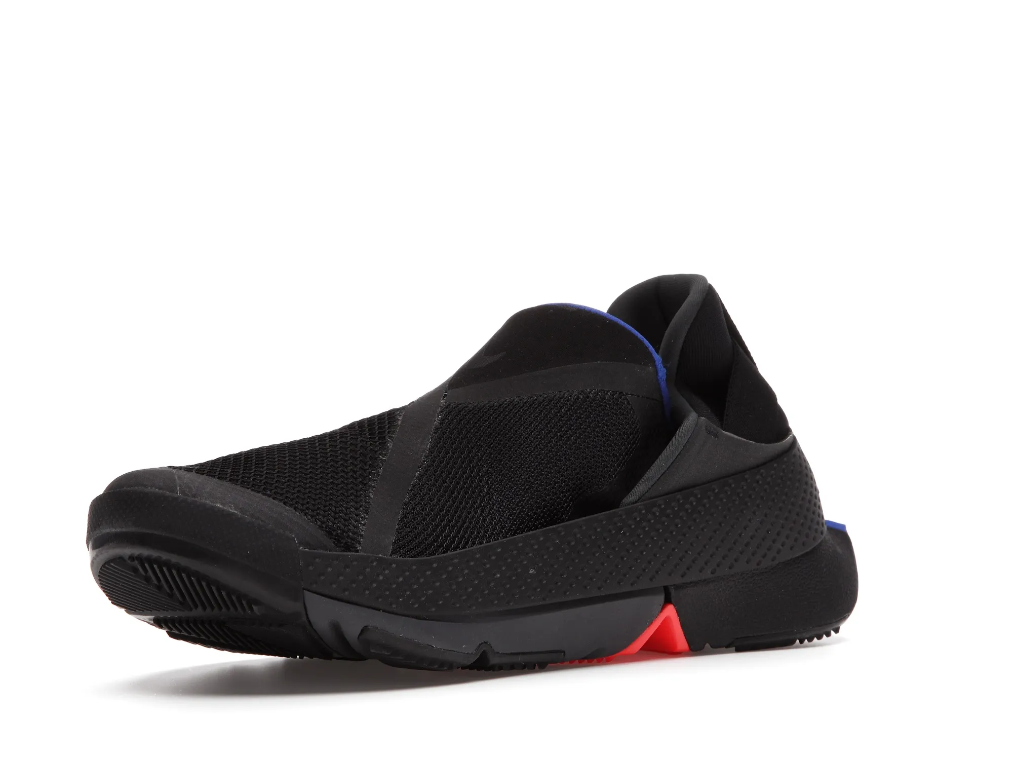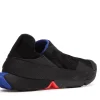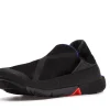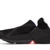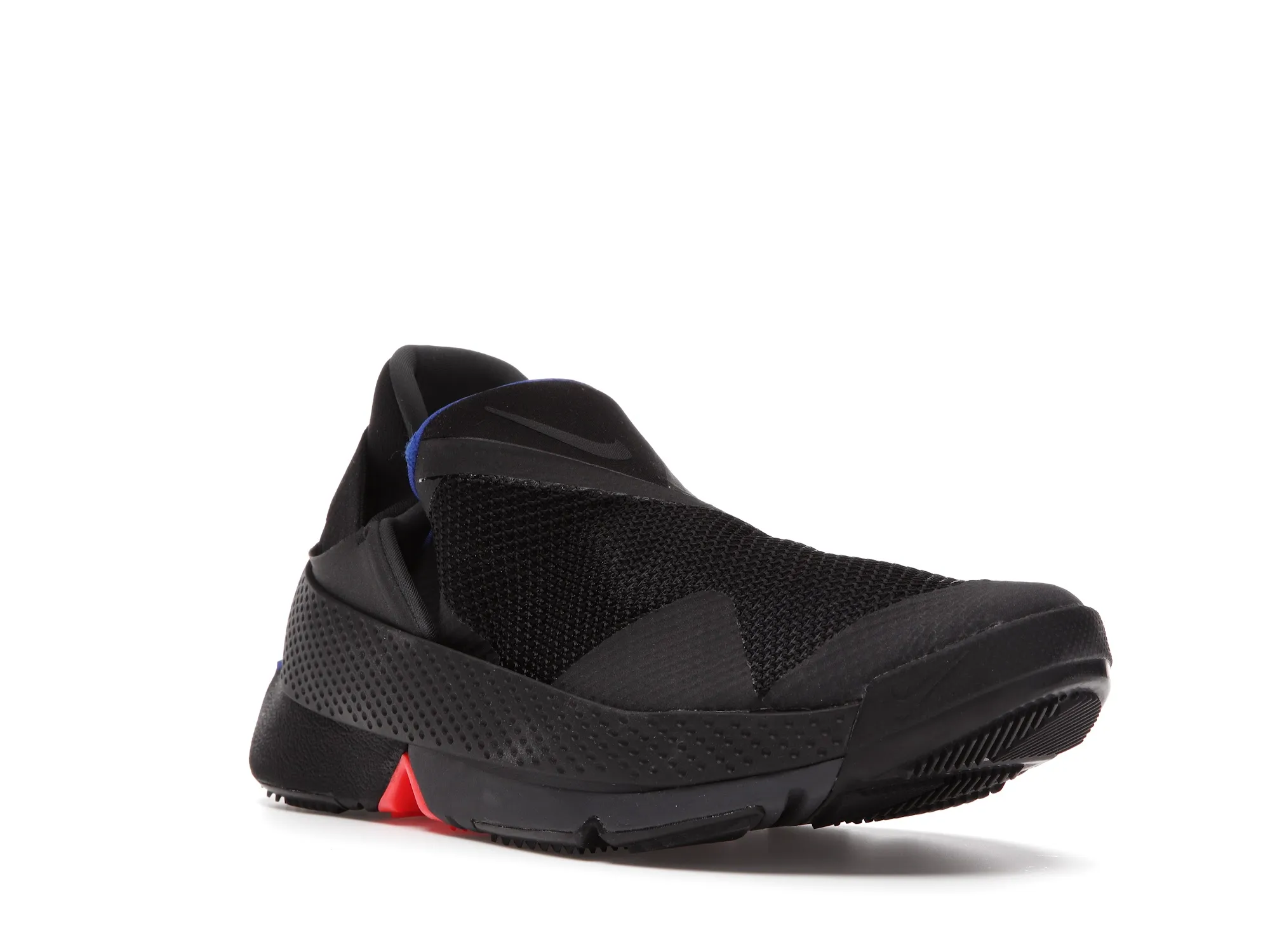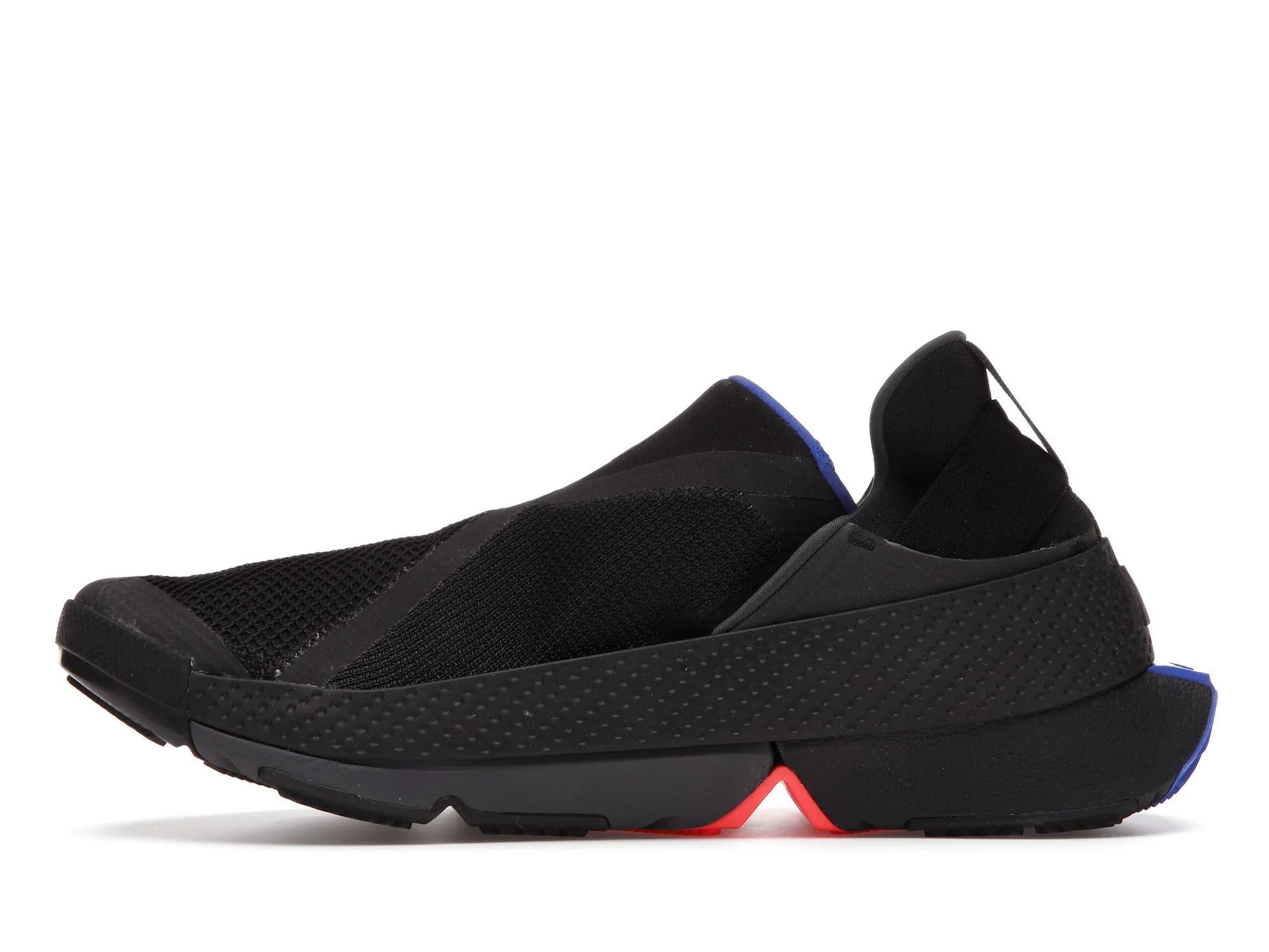 The Nike Go FlyEase is constructed of a mesh upper with reinforced seams along the forefoot and heel. Its elastic midsole tensioner surrounds an EVA foam sole that is split at the midfoot to accommodate the contractional motion the sole makes when prepped for entrance. The sole protrudes slightly beyond the heel so that it can be an easy target to step on to unlock the bi-stable hinge when taking off the sneaker.